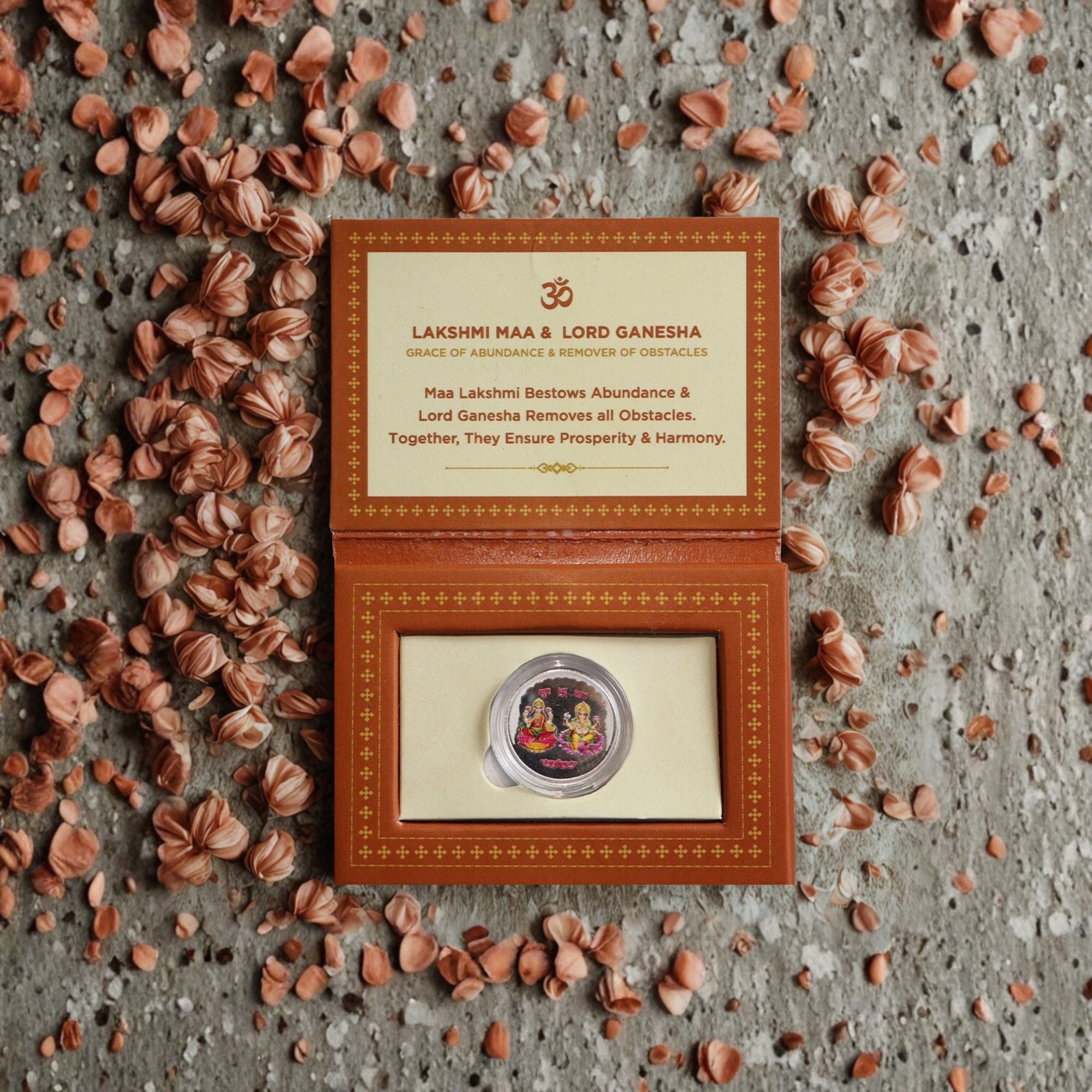 UV prints of Lakshmi ji and Ganesh Ji each coin reflects meticulous detailing, bringing divine charm and positivity into your home or office space. Since ancient times the silver coins embodies purity and elegance, offering a small yet meaningful treasure that combines devotion and investment-worthy value.