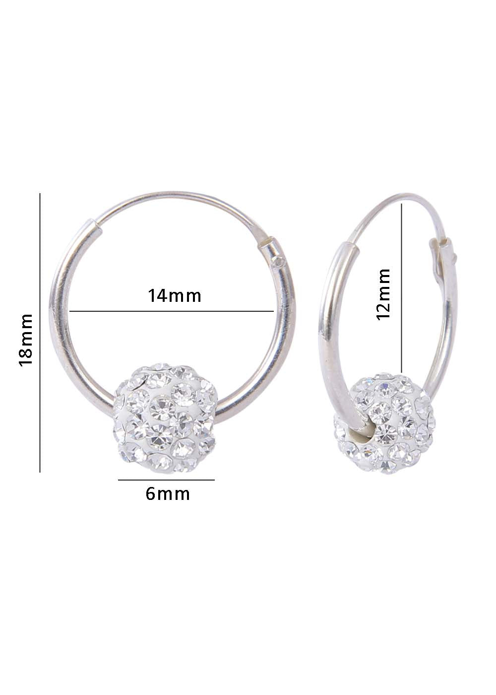 92.5 Sterling Silver 14 mm Hoop Earring with White Crystals Balls