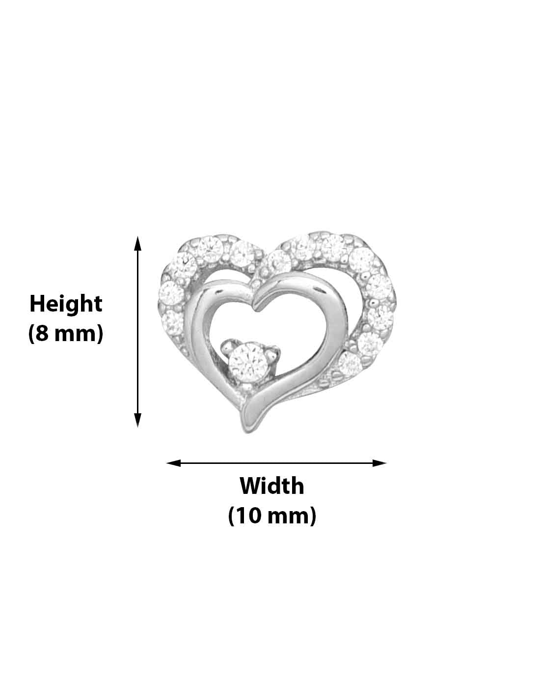 • These Earrings are crafted from 92.5 Silver with best finish metal and ensure skin-friendliness. These Heart Shape Stud Earrings are light weighted to combine the look and comfort. High Finish and Unique Designer Earrings with High Quality Non Allergic 92.5 Sterling Silver Composition.