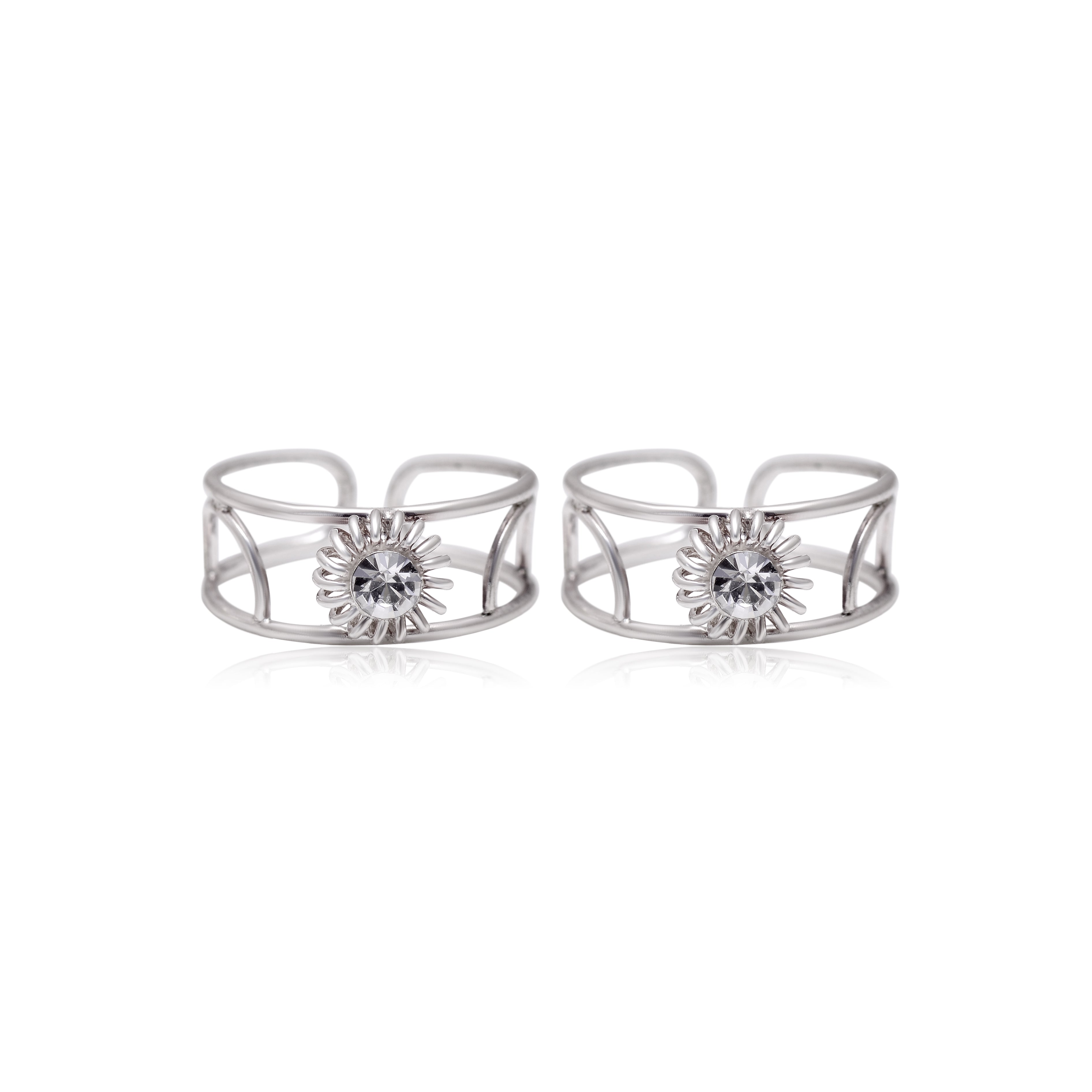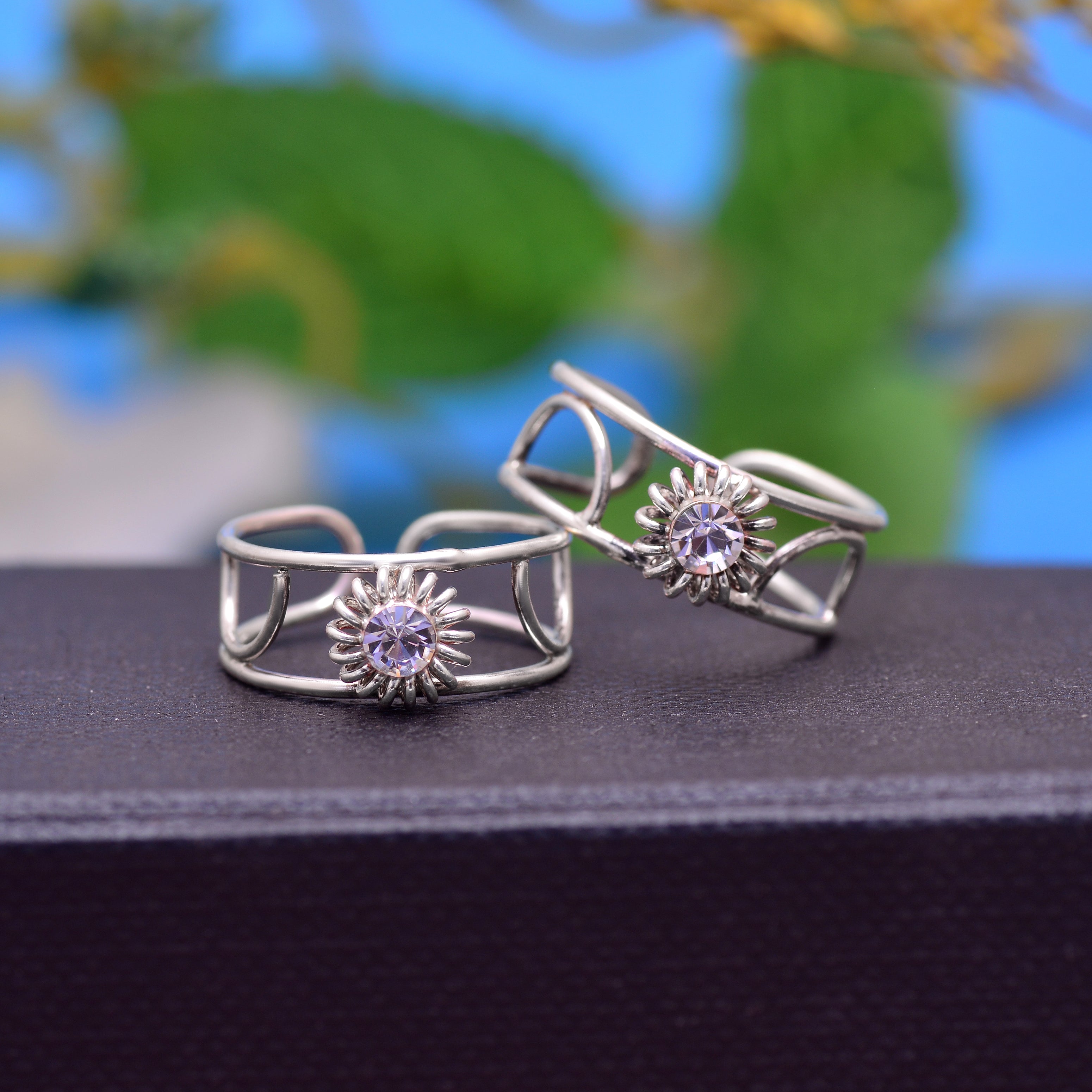 • High Finish and Unique Designer Toe Ring with High Quality Non Allergic 92.5 Sterling Silver Composition and White Crystal Stone.