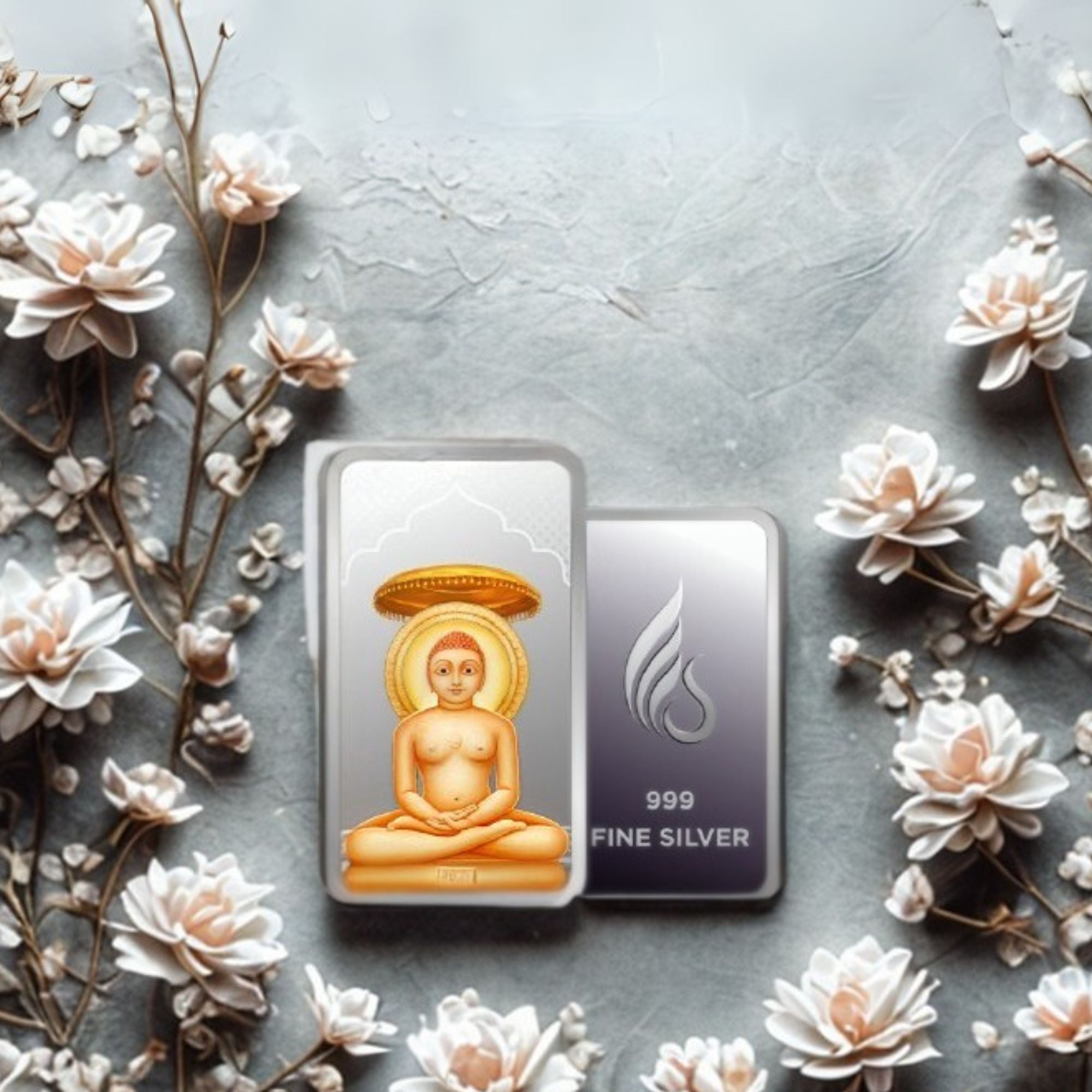 Bring home the blessings of Mahavir Swami ji with this sacred 5 gm 999 Pure Silver Bar — a timeless token of devotion. Elegant, meaningful, and pure — it’s more than just silver, it’s a blessing in your hands.