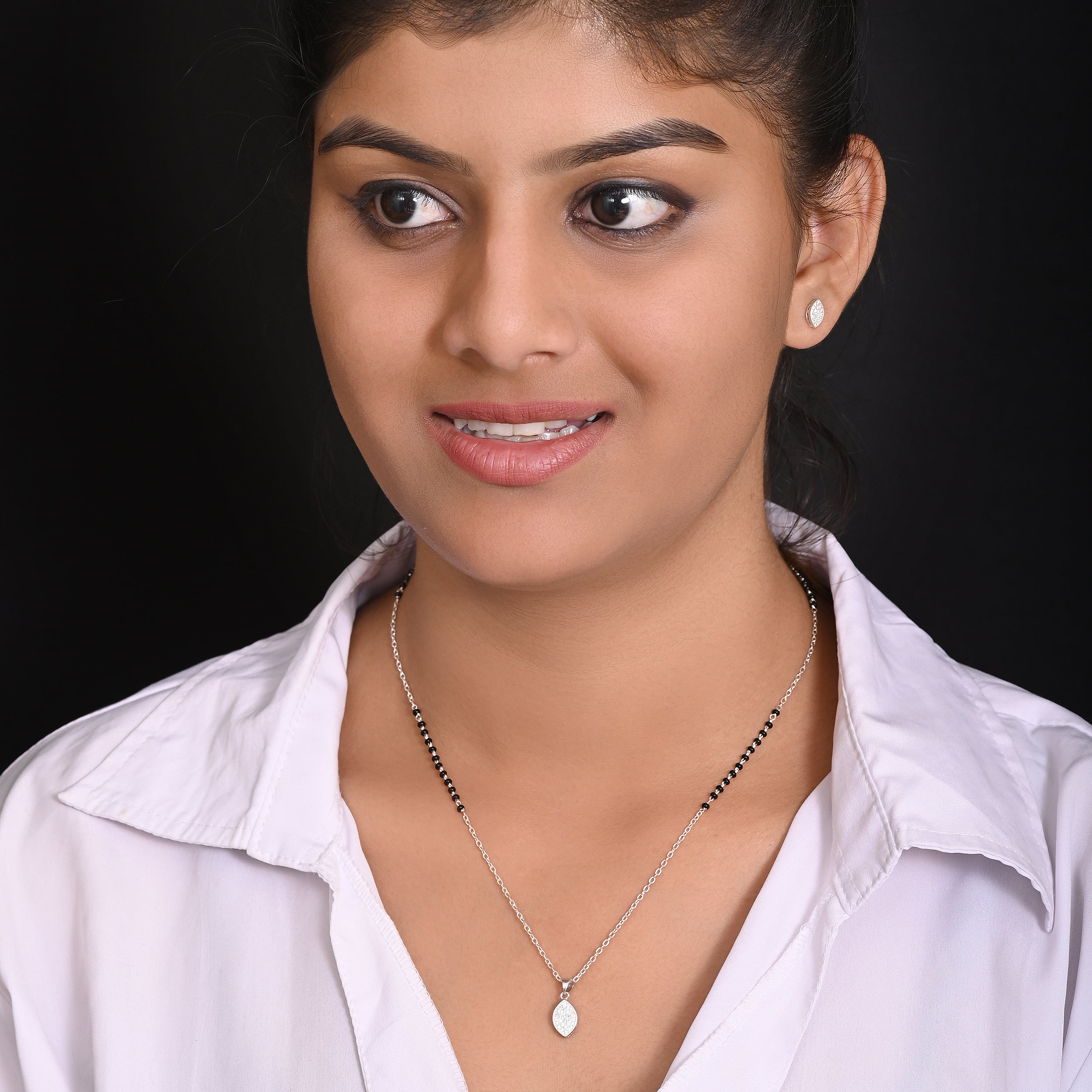 Pear Shape Pendant and Earring Mangalsutra Set in 925 Sterling Silver