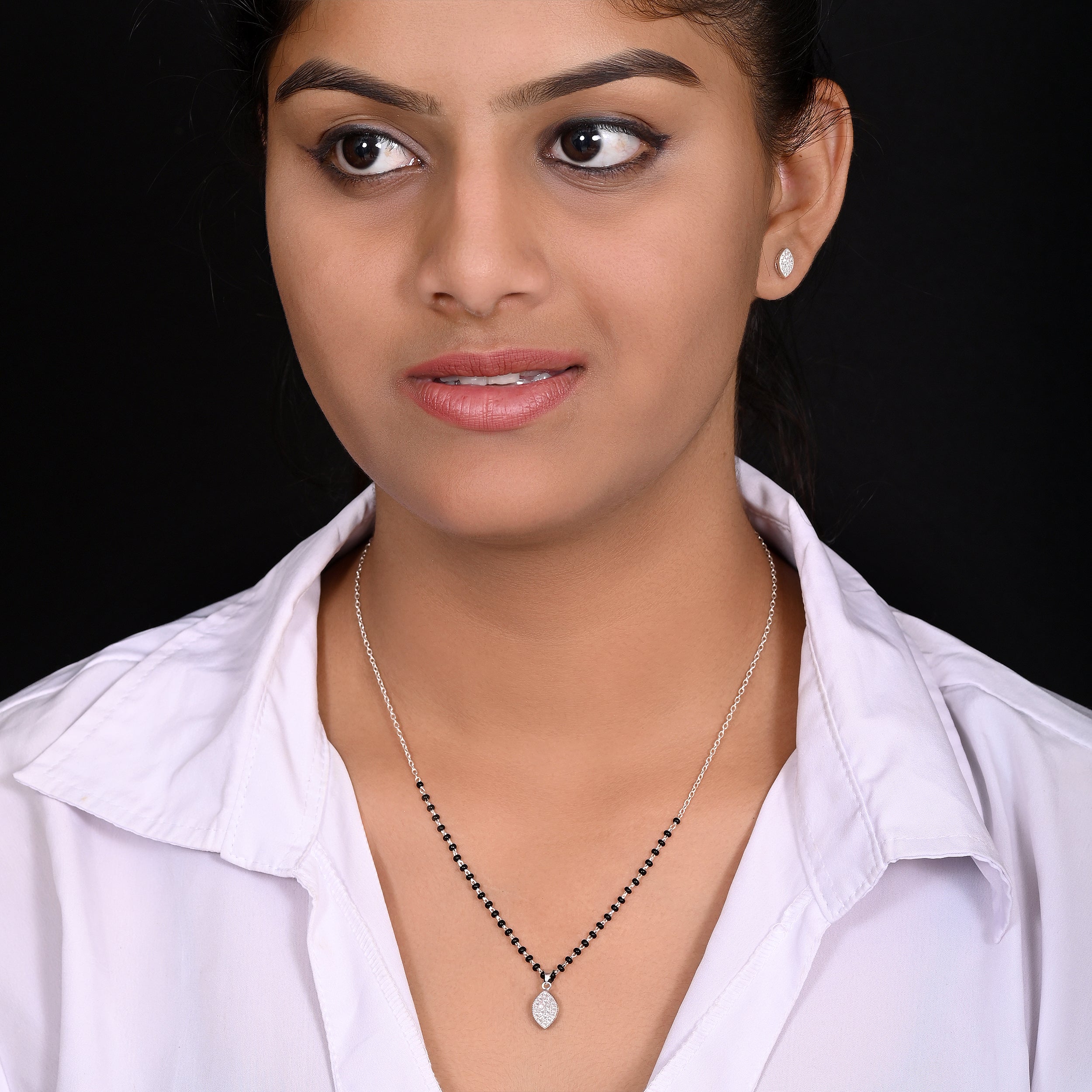 This pure silver designer Mangalsutra set with Earrings for women consists of Sterling Silver composition and comes with a '925' sterling silver stamp as a symbol of guaranteed product quality. All our jewellery are 92.5% purity silver and comes with an Authenticity Certificate.