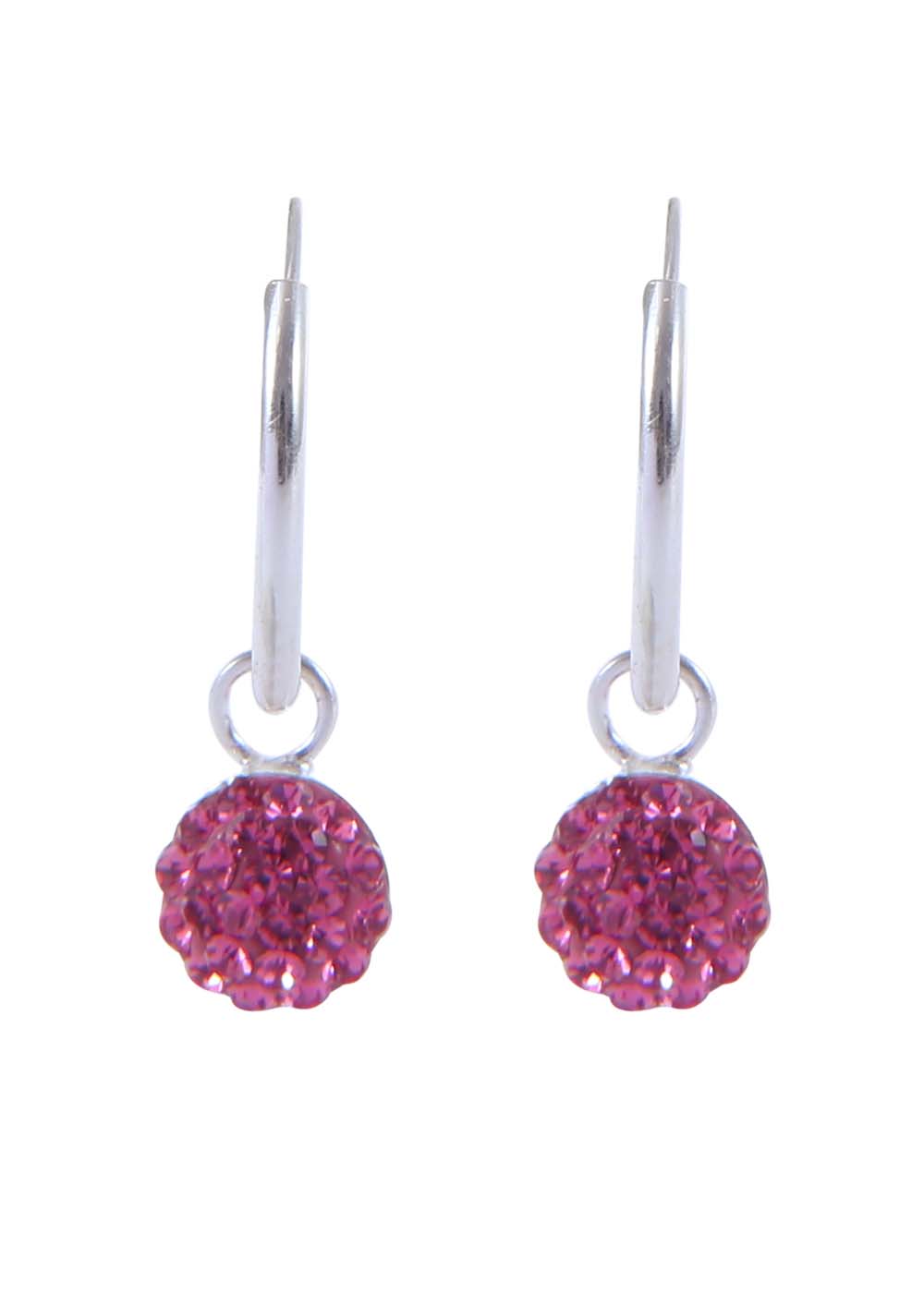 Pure 92.5 Sterling Silver 14 mm Hoop Earring with Pink Crystals Balls