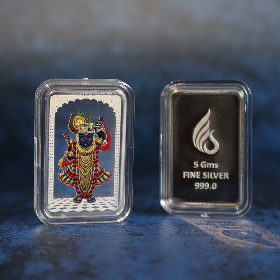 Bring home the blessings of Shri Nath ji with this sacred 5 gm 999 Pure Silver Bar — a timeless token of devotion. Elegant, meaningful, and pure — it’s more than just silver, it’s a blessing in your hands.