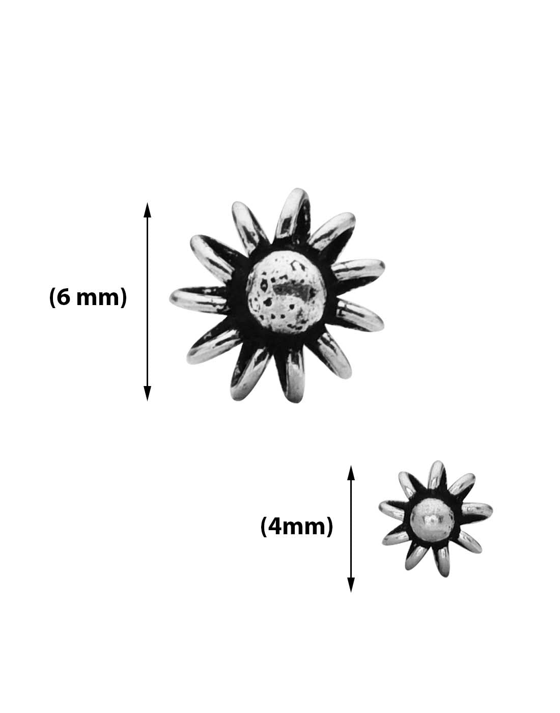 Trendy Flower 4 mm Nose Pin with wire in 92.5 Sterling Oxidized Silver